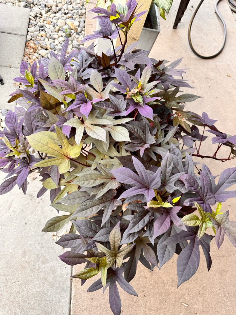 I found this gem at Lowe’s very early in the spring and just loved the vibrant color to add to my outdoor area by the pool. this vine loves full sun to partial shade. During the heat of the summer, definitely need to provide it with some shade or it will drop leaves like crazy. Moderate watering is vital and prime summer heat, making sure the plant receives the water needed to produce pretty purple flowers and bloom is a must. I have this one in a tall outside planter with well-draining soil that also has fertilizer beads in the soil. Enjoy the summer with some color!